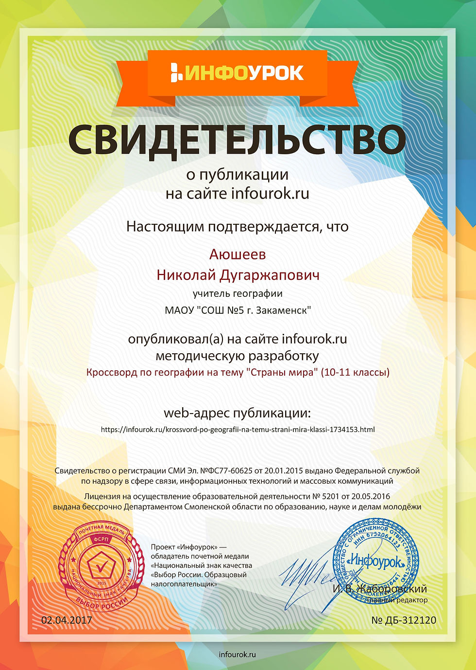 СЕРТИФИКАТЫ, СВИДЕТЕЛЬСТВА О ПУБЛИКАЦИИ МАТЕРИАЛОВ